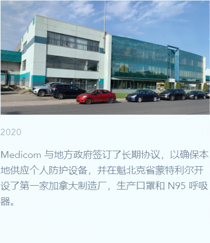 得益于我们的全球网络以及加拿大卫生部和 FDA 批准的位于美国、中国、台湾、法国、英国、新加坡、荷兰和加拿大的制造工厂,Medicom 具有独特的优势,可以满足对个人防护设备的指数级需求,例如面罩、医用长袍和其他感染控制产品,即使在全球大流行等危机期间也是如此。