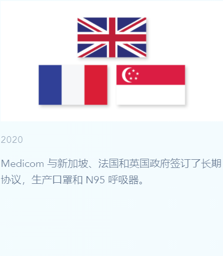 得益于我们的全球网络以及加拿大卫生部和 FDA 批准的位于美国、中国、台湾、法国、英国、新加坡、荷兰和加拿大的制造工厂,Medicom 具有独特的优势,可以满足对个人防护设备的指数级需求,例如面罩、医用长袍和其他感染控制产品,即使在全球大流行等危机期间也是如此。